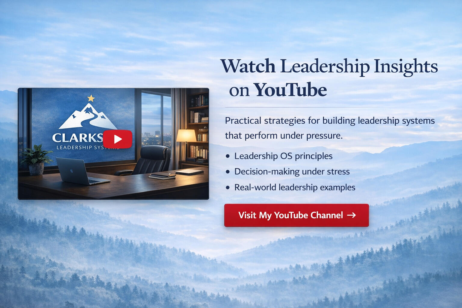 Practical leadership insights focused on building systems that perform under pressure.Explore how trust, clarity, and accountability show up in real leadership situations—and how to apply them within your own team or organization.Explore Leadership Insights on YouTube